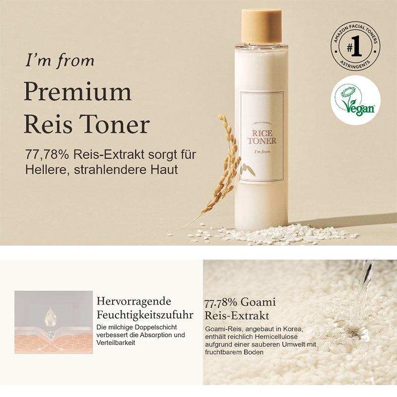 Der Whitening-Toner enthält 77,78 % Reisextrakt und bewahrt die Elastizität der Haut.